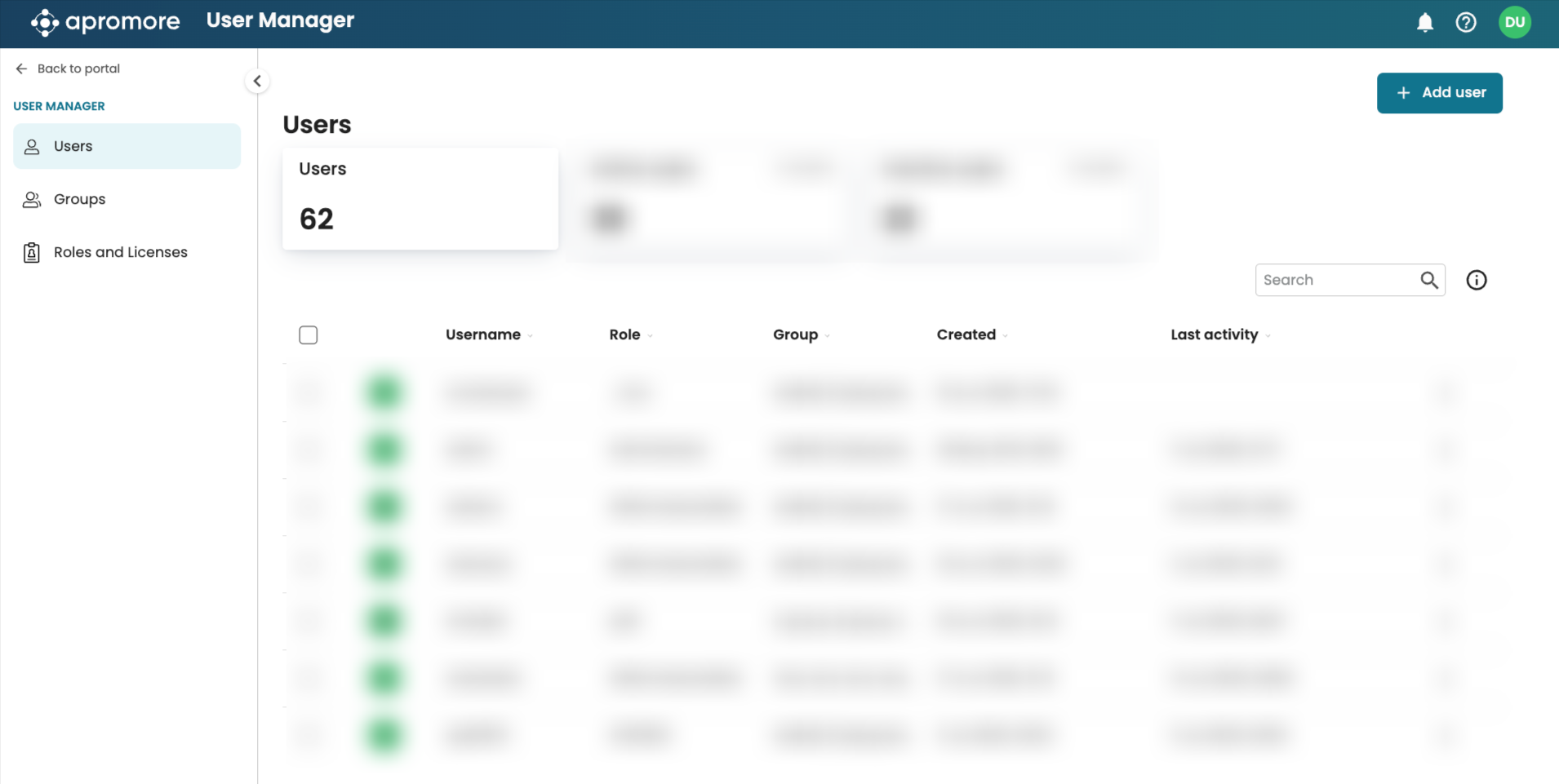 Manage users, groups and roles